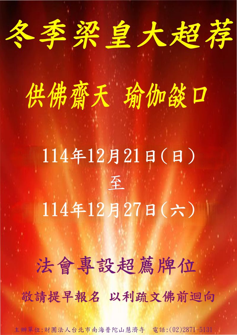 冬季梁皇大超荐,供佛齋天暨瑜伽焰口施食
